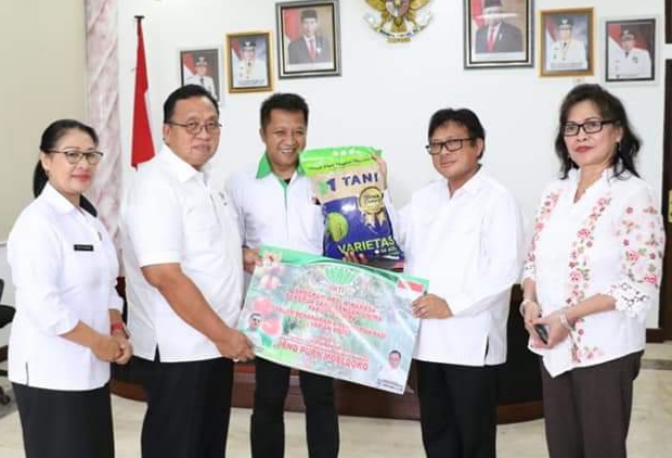Tondano – Wakil Bupati Minahasa Robby Dondokambey (RD) yang juga sebagai Ketua Himpunan Kerukunan Tani Indonesia (HKTI) Kabupaten Minahasa, menerima secara simbolis benih padi Varietas M70D, bertempat diruang kerjanya, Rabu (22/1/2020).