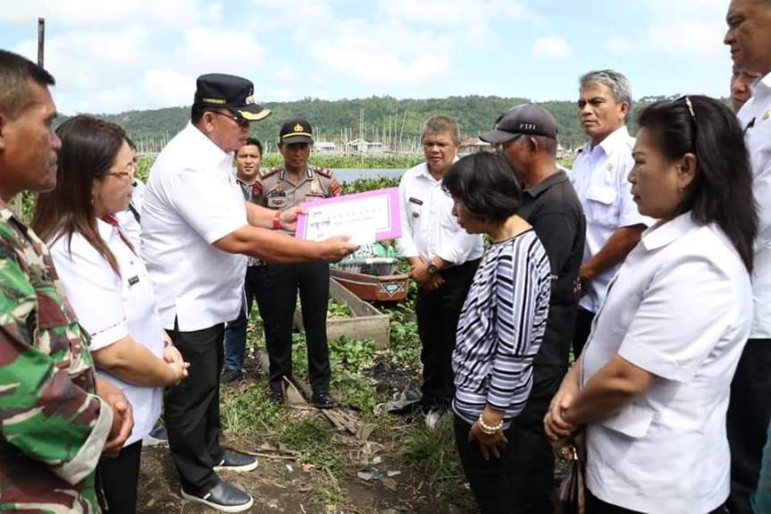 Minahasa – Wakil Bupati Minahasa Robby Dondokambey, S.Si, MM Menyerahkan Bantuan Kebakaran di Desa Paslaten Kakas, Rabu 26/02/2020