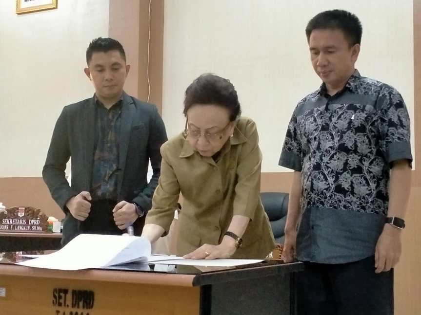 Ketua DPRD Minsel Jenny Johana Tumbuan. SE akhirnya menetapkan ketua-ketua dan struktur di masing-masing komisi. Setelah penetapan itu, ketua DPRD lalu menutup sidang paripurna sekitar pukul 20.00 Wita.