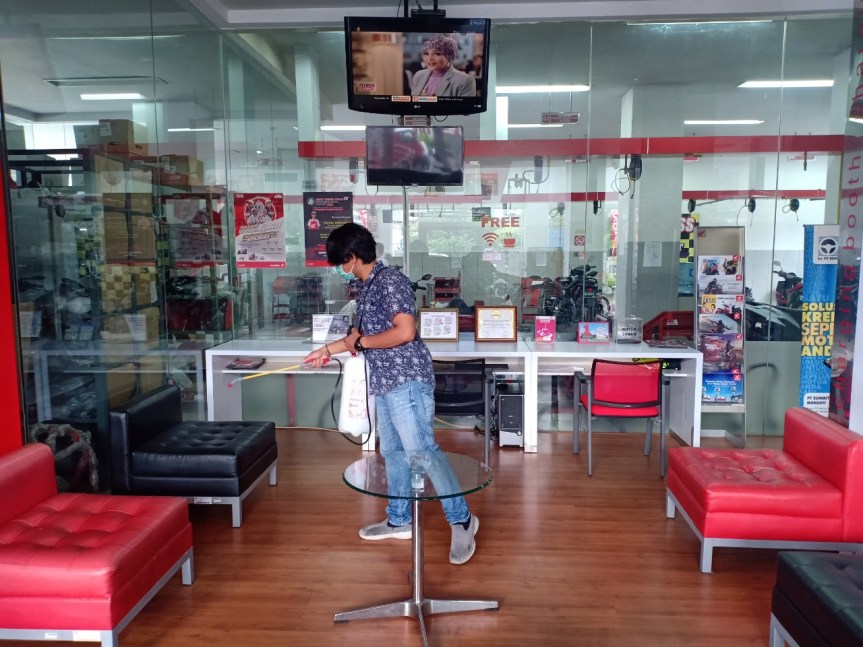 Tidak hanya itu, AHASS pun wajib melaksanakan penyemprotan disinfektan sebagai upaya untuk menjamin kenyamanan dan kesehatan bagi para pekerja dan pengguna Sepeda Motor Honda yang melakukan service di AHASS tersebut.