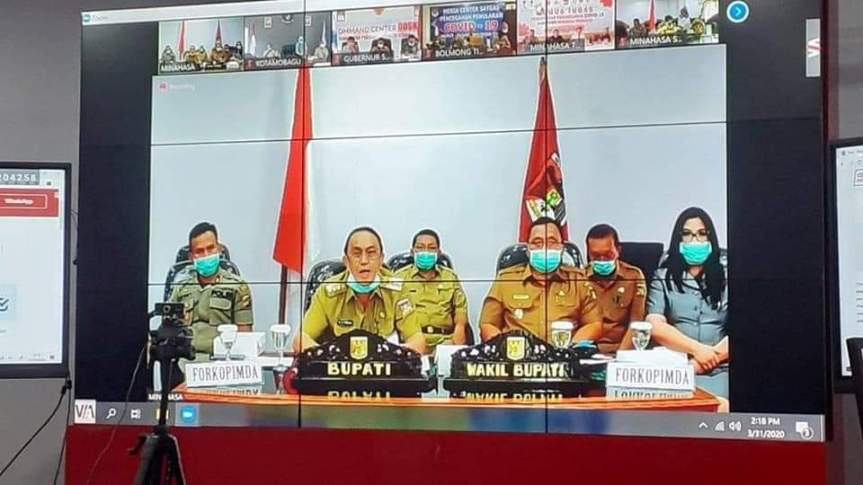 Dalam kesempatan tersebut Bupati Roring dan Wabup Dondokambey mendengarkan arahan dari gubernur, Pangdam dan Kapolda kemudian melaporkan kepada bapak gubernur apa upaya dan penanganan serta langkah antisipasi yang sudah dilakukan terkait penanganan covid 19