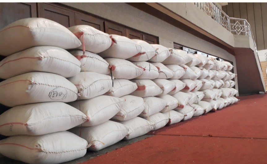 Tondano – Puluhan karung beras yang akan dibagikan kepada warga minahasa yang terdampak virus korona (covid-19) tiba di Tondano, Senin 06/4. Dari pantauan media ini, puluhan karung beras ini ditempatkan di gedung wale ne tou tondano.