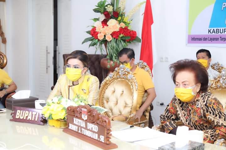 Bupati CEP dalam vicon ini didampingi ketua DPRD Jenny J. Tumbuan, Asisten pemerintahan dan kesra, Asisten Administrasi Umum, Kepala BPBD, Kaban Bapelitbang, Kadis Sosial, Kadis Kesehatan dan Kadis Koperasi UMKM.
