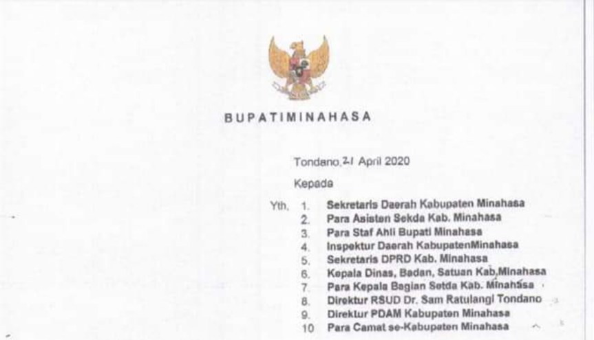 Berikut ini Surat Edaran Bupati Minahasa;