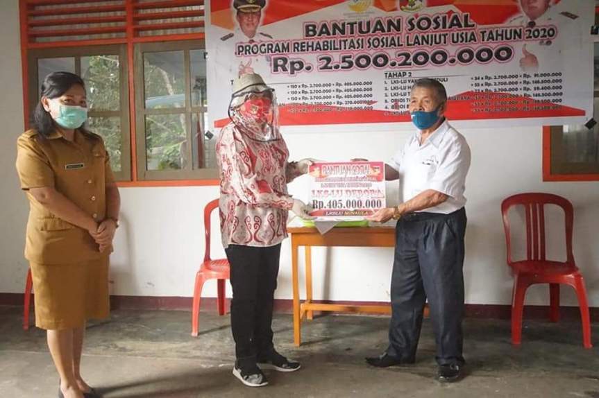 Minahasa – Ketua TP PKK Kabupaten Minahasa Dra. Fenny Ch Roring Lumanauw, SIP Bersama Pemerintah Kabupaten Minahasa Melalui Dinas Sosial Menyerahkan Secara Simbolis bantuan Program Rehabilitasi Sosial Lanjut Usia Tahun 2020, Senin 27 April 2020, Tempat Panti Sosial Tresna Werda INA I, Kelurahan Tounkuramber, Kecamatan Tondano Barat.