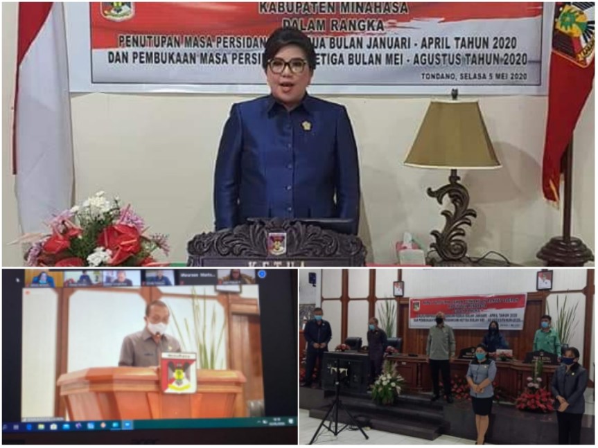Tondano – DPRD Kabupaten Minahasa menggelar rapat paripurna terkait Penutupan Persidangan Kedua Bulan Januari-April 2020 dan Pembukaan Masa Persidangan Ketiga Bulan Mei-Agustus 2020 melalui video conference, Selasa (05/04/2020).