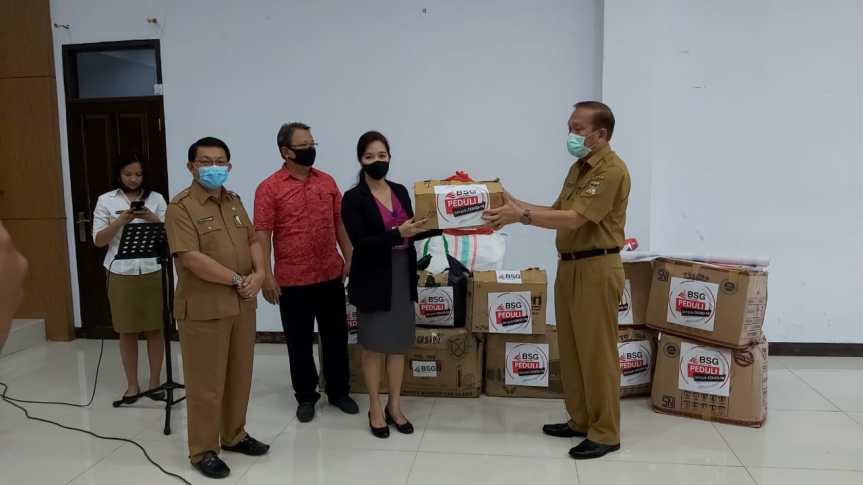 Sekretaris Daerah (Sekda) Kabupaten Minahasa, Frits Muntu menyampaikan banyak terima kasih dan apresiasi kepada BSG yang sudah memberikan bantuan dalam rangka penanganan penyebaran Covid-19 di Kabupaten Minahasa.