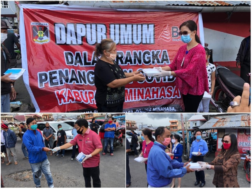 Makanan dan masker dibagikan secara simbolis oleh Pemerintah Kabupaten Minahasa dan Forkopimda Kab. Minahasa kepada masyarakat sekitar kantor camat kawangkoan, terminal kawangkoan dan pasar kawangkoan dari kalangan pedagang, tukang ojek, sopir, kusir bendi dan masyarakat umum lainnya.