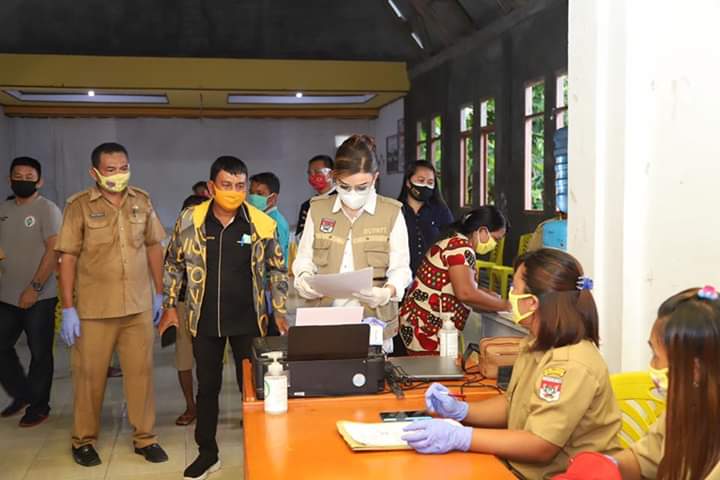 Minsel – Bupati Minahasa Selatan Christiany Eugenia Paruntu melaksanakan pemantauan penyaluran Bantuan Langsung Tunai Dana Desa (BLT DD) di desa-desa Di Kabupaten Minsel Rabu, 19 Mei 2020. Pada kesempatan tersebut Bupati berkunjung pada salah satu Desa Pungkol Kecamatan Tatapaan.