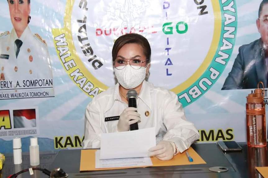 Tomohon – Wakil Wali Kota (Wawali) Tomohon, Syerly Adelyn Sompotan (SAS) mencatatkan pernikahan empat pasang suami isteri (Pasutri) di Terung Ne’ Kumawe’ng Dinas Kependudukan dan Catatan Sipil (Disdukcapil) Kota Tomohon, Rabu (15/7/2020).