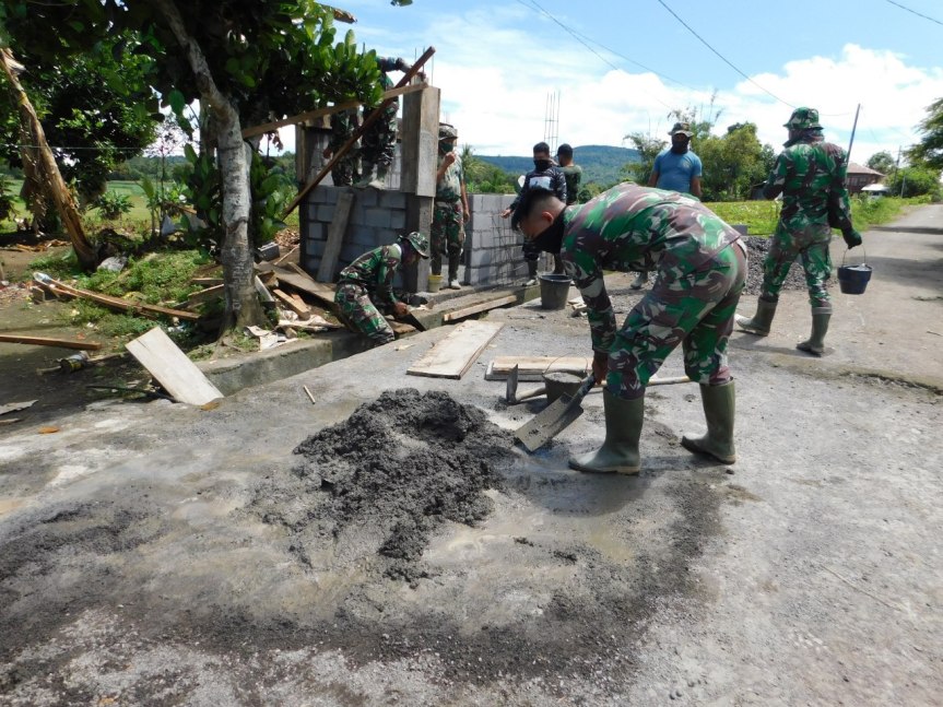 Minahasa – Wakil Komandan Satgas TMMD ke-108 Kecamatan Langowan, Kabupaten Minahasa Provinsi Sulawesi Utara, Mayor Inf Feky Welang memantau langsung pembangunan fisik diantaranya Pos Kamling kedua yang berada di Desa Totolan, yang berada di batas Jaga-1 dan Jaga-2, pada Rabu 15/07/2020.