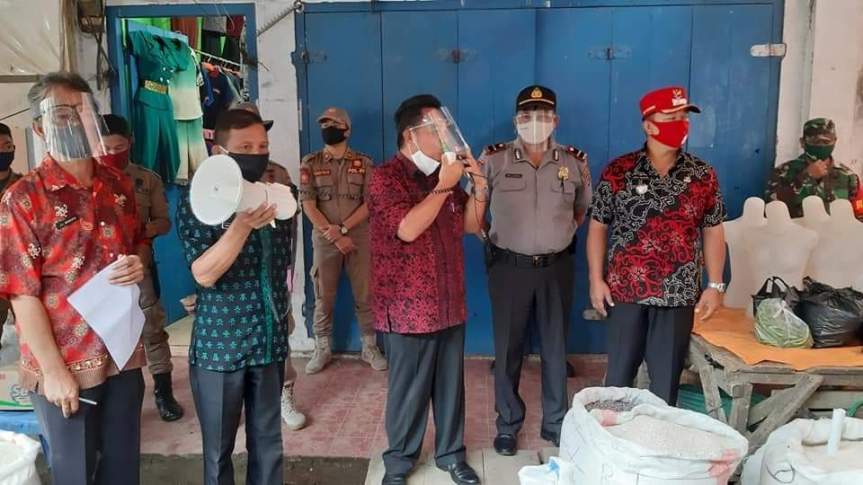 Minahasa – Pemerintah Kabuoaten Minahasa melalui Tim Gugus Tugas Percepatan Penanganan Covid 19 menutup sejumlah toko, kios serta lapak di pasar Langowan, Kamis 16/7 siang tadi.