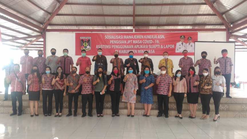 Kegiatan ini dilaksanakan dengan menerapkan protokol kesehatan covid 19 dimana kegiatan ini membahas tentang Sosialisasi manajemen kinerja ASN, Sosialisasi pengisian JPT semasa covid-19 dan penyampaian regulasi terbaru sekaligus Bimtek dan asistensi penggunaan Aplikasi SIJAPTI dan LAPOR.