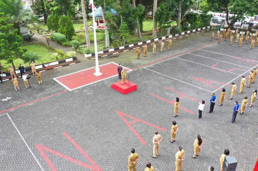 Dengan menerapkan protokol kesehatan, Bupati Dr Ir Royke Octavian Roring MSi menyampaikan sangat bersyukur kepada Tuhan, karena kembali dapat melaksanakan apel setelah lima bulan dalam masa pandemi Covid-19.