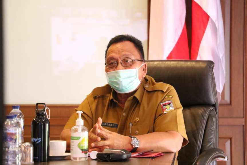 Minahasa – Wakil Bupati Minahasa Robby Dondokambey, SSi mengikuti Rapat Koordinasi dan Evaluasi Tim Koordinasi Penanggulangan Kemiskinan Daerah Prov. Sulut dan Kab/Kota se-Prov. Sulut Tentang Perumusan Kebijakan Strategis Dampak Pandemi Covid-19 via Zoom Meeting, Selasa, 11 Agustus 2020.