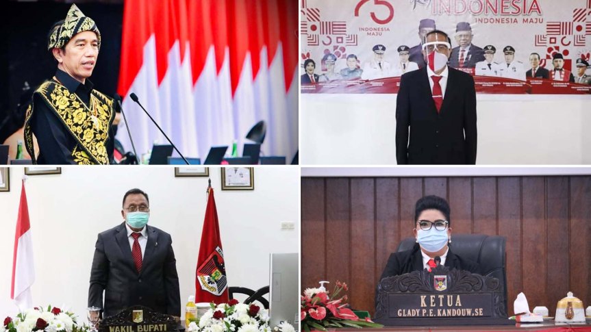 Tondano – Dewan Perwakilan Rakyat Daerah ( DPRD) Kabupaten Minahasa menggelar Rapat Paripurna untuk Mendengarkan Pidato Kenegaraan Presiden Republik Indonesia pada Sidang Tahunan MPR RI Dalam Rangka HUT ke -75 Kemerdekaan Republik Indonesia Dalam Sidang Bersama DPR RI dan DPD RI di Gedung Manguni Sasaran Tondano, Jumat 14 Agustus 2020.