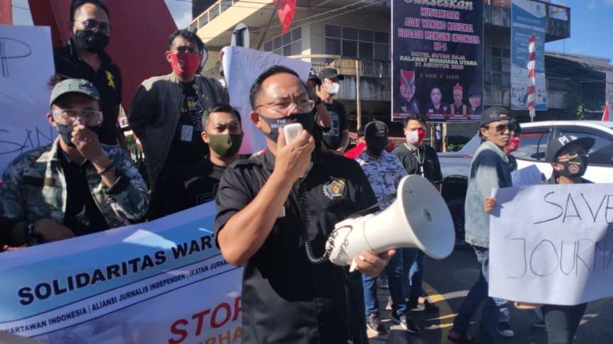 Desakan itu disampaikan Persatuan Wartawan Indonesia (PWI), Ikatan Jurnalis Televisi Indonesia (IJTI), Aliansi Jurnalis Indonesia (AJI), Persatuan Wartawan Minahasa (Persmin), serta Aliansi Wartawan Minahasa (AWAM) dalam aksi solidaritas yang dilaksanakan di depan Lapangan Sam Ratulangi Tondano dan halaman Polres Minahasa.