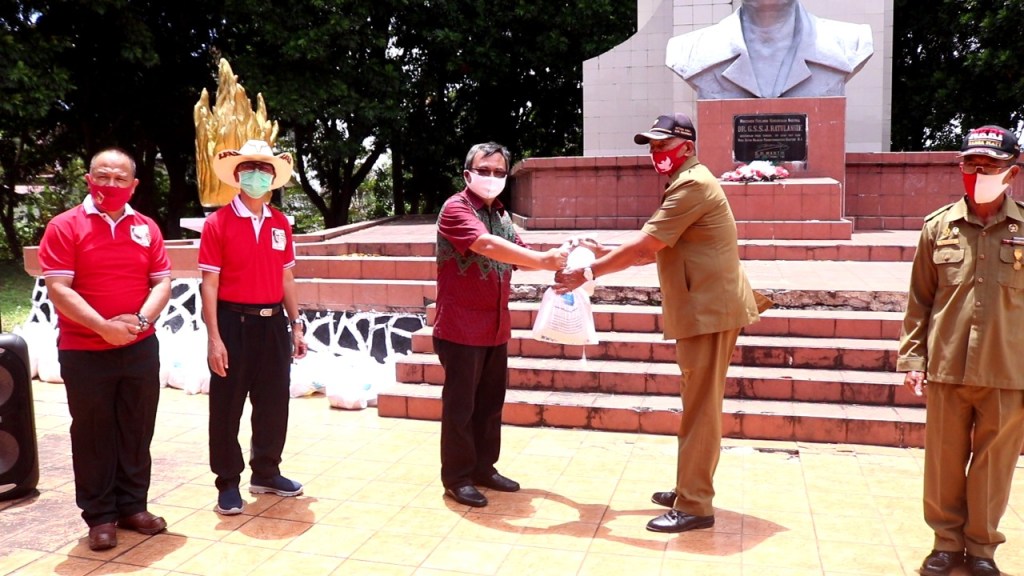 Tondano – Rukun Ratulangi Sulawesi Utara melakukan bakti sosial dalam rangka memeriahkan HUT RI ke 75 yang digelar di Monumen Makam Pahlawan Nasional Sam Ratulangi di Tondano, Jumat 28 Agustus 2020.