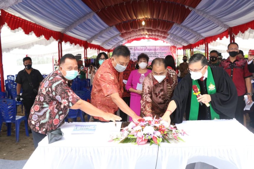 Sebelum ibadah, Gubernur Sulawesi Utara Meresmikan Gedung Pastori 3 & 4, Taman Kanak-kanak dan penggunaan lonceng gereja GMIM Betel Kembuan dimana Ibadah dipimpin Ketua BPMS GMIM Pdt. DR. Hein Arina