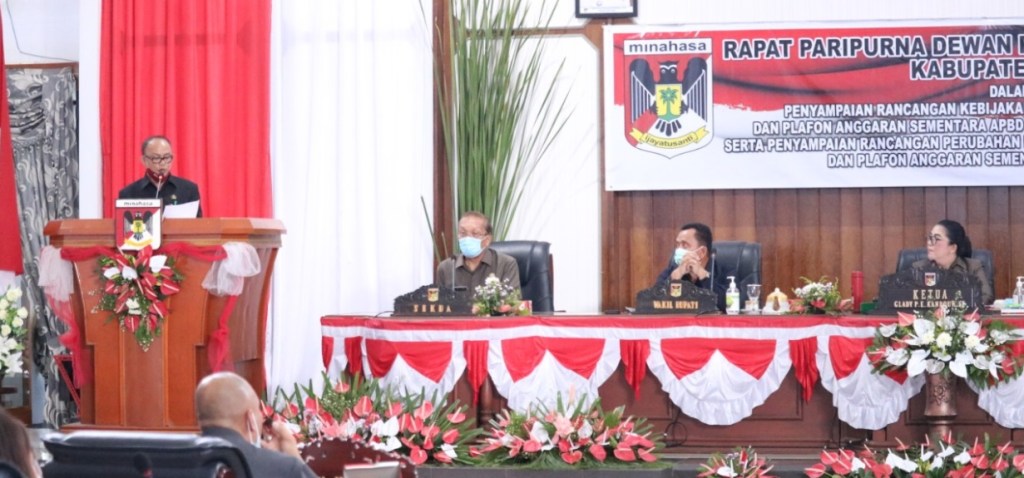 Tondano – Dewan Perwakilan Rakyat Daerah (DPRD) Kabupaten Minahasa menggelar Rapat Paripurna Dalam Rangka Penyampaian Rancangan Kebijakan Umum APBD dan Rancangan Prioritas dan Plafon Anggaran Sementara APBD Kabupaten Minahasa Tahun Anggaran 2021 Serta Penyampaian Rancangan Perubahan Kebijakan Umum APBD dan Perubahan Prioritas dan Plafon Anggaran Sementara APBD Tahun Anggaran 2020, Senin (31/8/2020) di Ruang Sidang DPRD Minahasa.