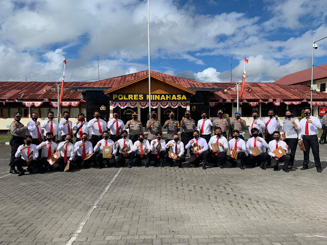 Upacara pemberian reward ikut dihadiri Waka Polres Kompol Achmad Sutrisno, para Pejabat Utama (PJU) serta personil Polres Minahasa.(CT)