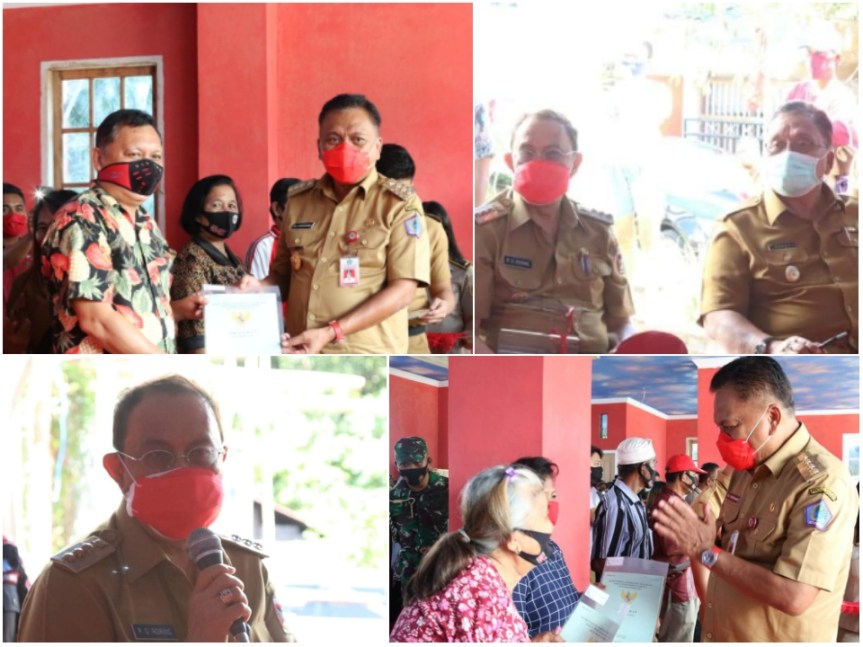 Minahasa – Bupati Minahasa DR. Ir. Royke Octavian Roring MSi bersama Wakil Bupati Robby Dondokambey, SSi, mendampingi Gubernur Sulawesi Utara Olly Dondokambey, SE Pda Acara Penyerahan Sertifikat Pendaftaran Tanah Sistematis Lengkap (PTSL) bagi Masyarakat Kabupaten Minahasa. Senin 14 September 2020, di Kecamatan Tombariri Desa Tambala
