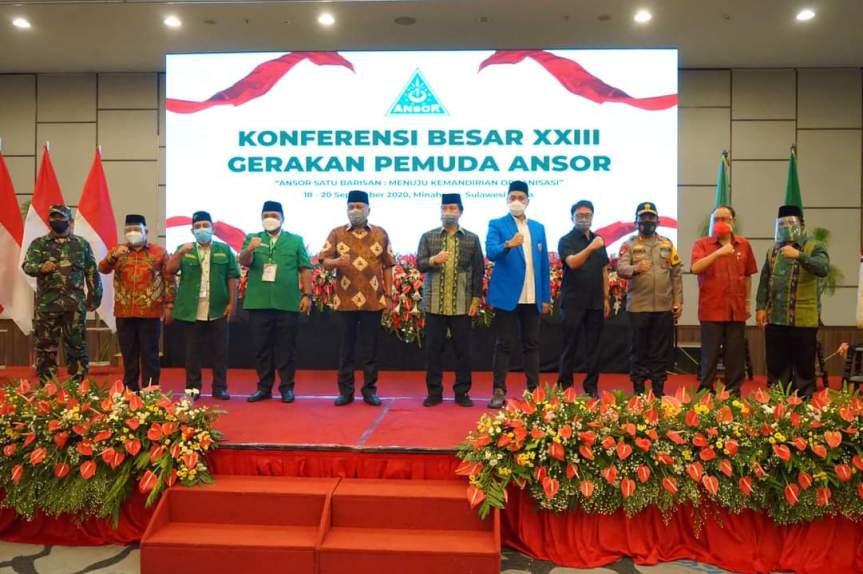 Dihadiri Wakil Gubernur Sulut Drs Steven O E Kandouw, Ketua DPRD Sulut Andrei Angouw, Forkopimda Sulawesi Utara, Pimpinan Pusat Gerakan pemuda Ansor Ketua Umum H. Yaqut Cholil Qoumas, Sekretaris Jendral ABDUL Rochman, dan Pengurus Pimpinan Wilayah. (CT)