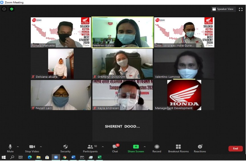 Melalui seleksi AHM Best Student, Senin 28 September 2020, keduanya telah berhasil mengikuti tahap awal dimana Kayla Andresen menang dengan karya tulis berjudul ‘Uji Efektivitas Home Based Learning’ dan Nurain Lairi ‘Pengaruh alang-alang Terhadap Perkecambahan Tanaman Jagung’.