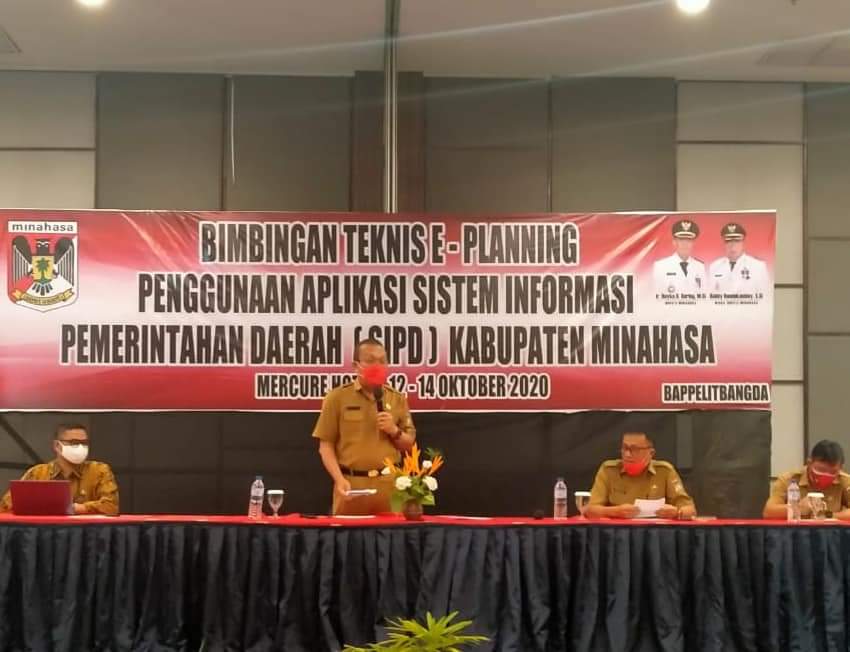 Minahasa – Pemerintah Kabupaten (Pemkab) Minahasa melalui Badan Perencanaan Pembangunan, Penelitian dan Pengembangan Daerah (Bappelitbangda) Kabupaten Minahasa, menggelar bimbingan teknis (Bimtek) E-Planning penggunaan Aplikasi Sistem Informasi Pemerintahan Daerah (SIPD), Senin (12/010) pagi, bertempat di Hotel Mercure, Desa Tateli Kecamatan Mandolang.