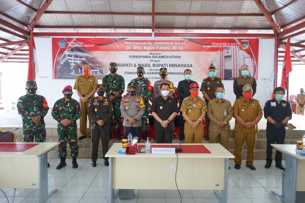 Tondano – Bupati Minahasa Royke Octavian Roring (ROR) dan Wakil Bupati Minahasa Robby Dondokambey (RD) menerima kunjungan kerja Pjs. Gubernur Sulawesi Utara DR. Drs. Agus Fatoni, MSi, bersama Forkopimda Sulut di Aula Benteng Moraya Tondano, Selasa (13/10/2020).