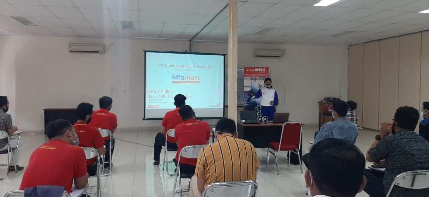 Sosialisasi pun diberikan dengan cara bertatap muka langsung antara peserta dan instruktur safety riding yang tentunya menerapkan protokol kesehatan yakni pengaturan jarak antar peserta, menggunakan masker dan handsanitizer.