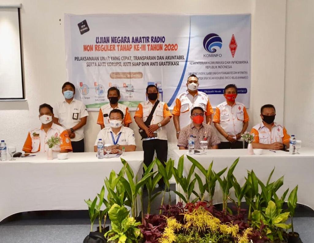 Tondano – Bupati Minahasa Dr Ir Royke Octavian Roring MSi IPU ASEAN Eng yang diwakili oleh Kepala Dinas Komunikasi dan Informatika Agustivo Tumundo SE MSi membuka dengan resmi pelaksanaan Ujian Negara Amatir Radio Non Regular Tahap III Tahun 2020 yang digelar oleh Balai Monitor Spektrum Frekwensi Radio (SFR) Kementerian Kominfo RI Kelas II Manado, pada Jumat, 23 Oktober 2020 di Hotel Yama Tondano.