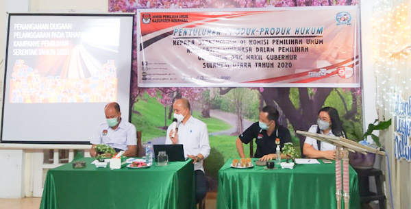 Tondano – Pemilihan Serentak Tahun 2020 harus berintegritas dan sesuai regulasi. Demikian intisari materi penyuluhan produk hukum kepada stakeholder yang digelar KPU Sulut dan Minahasa di Tondano, Senin (09/11) 30 hari jelang pemungutan suara 9 Desember 2020.