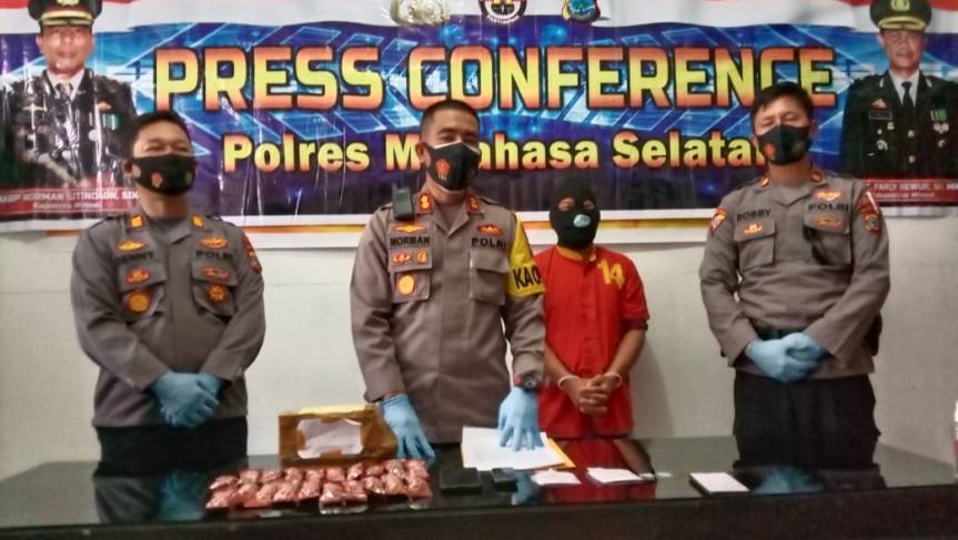 Minsel – Satuan Reserse Narkoba (Sat Resnarkoba) Polres Minsel mengamankan seorang tersangka berinisial JL alias Jonli (33), warga Desa Esandom Dua, Kecamatan Tombatu Timur, Kabupaten Minahasa Tenggara (Mitra) terkait kasus narkoba. Hal ini diungkap saat Press Conference, Selasa siang (10/11/2020).