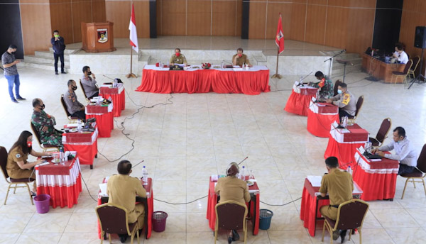 Rapat ini dilaksanakan dengan menerapkan protokol kesehatan covid 19 dihadiri oleh kapolresta Manado AKBP Elvianus Laoli, Dandim 1309 Manado Letkol Inf Yohanes Raymond Raja Sulung Purba SH, Kapolres Tomohon AKBP Bambang Ashari Gatot, Kapolres Minahasa AKBP Henzly Moningkey SIK MSI, Dandim 1302 Minahasa Letkol INF Helbert Andi Amino Sinaga SIP, Ketua Pengadilan Tinggi Tondano ST Iko Sudjatmiko SH, MH, Sekretaris Daerah Kabupaten Minahasa Frits Muntu S.Sos, Asisten Pemerintahan dan Kesra Dr Denny Mangala MSi, beserta jajaran Pemerintah Kabupaten Minahasa di BPU Tondano, Senin 23 November 2020.