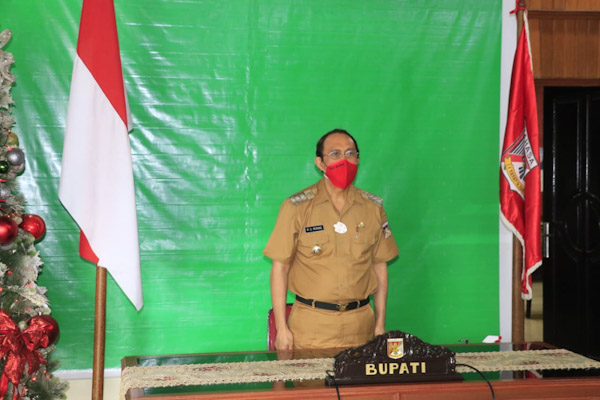 Tondano – Bupati Minahasa Dr. Ir. Royke Octavian Roring, M.Si dan Sekretaris Daerah Kab. Minahasa Frits Muntu, S.Sos mengikuti acara Penyerahan Daftar Isian Pelaksanaan Anggaran (DIPA) dan Buku daftar Alokasi Transfer ke Daerah Dan Dana Desa Tahun 2021 Oleh Presiden Republik Indonesia yang diselenggarakan lewat Video Conference menggunakan Aplikasi Zoom. Rabu, 25 November 2020.