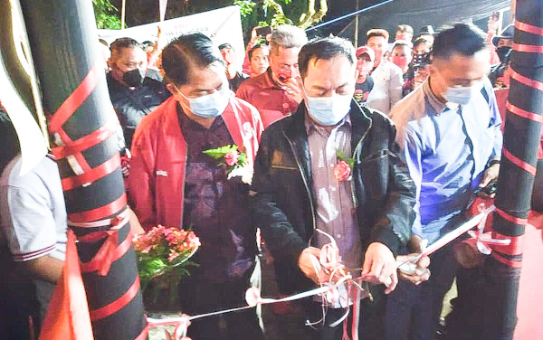 Tomohon – Pasangan Calon Caroll Senduk dan Wenny Lumentut di dampingi istri dan ketua tim pemenangan Johny Runtuwene menghadiri kegiatan konsolidasi penguatan serta lakukan peresmian dua posko yang berada di Kelurahan Kayawu kecamatan Tomohon Utara, Selasa (24/11/20) semalam.