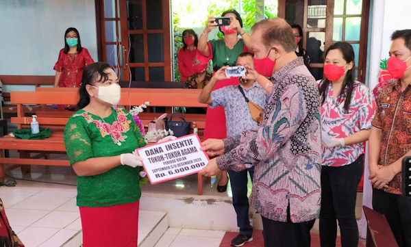 Dalam ibadah tersebut Sekretaris Daerah juga menyerahkan diakonia natal bagi Pendeta, Tokoh Agama yang belum pernah Menerima Insentif, lansia dan penyandang disabilitas, Bantuan sembako kepada masyarakat, dan ibadah dilaksanakan dengan menerapkan protokol kesehatan covid 19.
