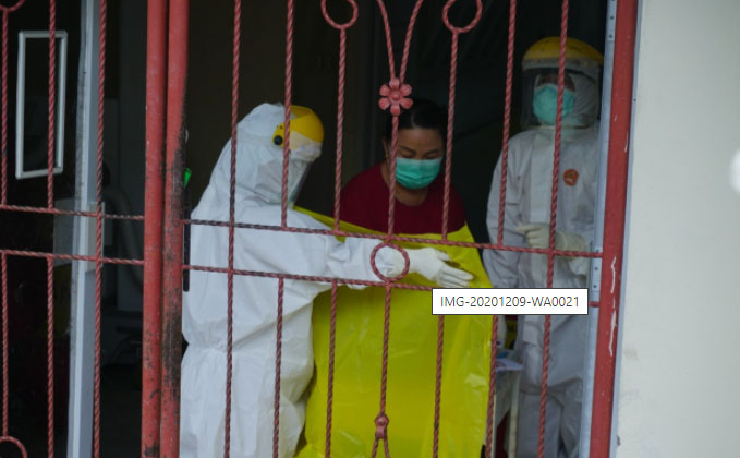 Dari pantauan media ini, terlihat satu anggota Kelompok Penyelenggara Pemungutan Suara (KPPS) dari TPS 5 Kelurahan Malalayang Satu Barat ikut masuk ke ruang isolasi dengan menggunakan alat pelindung diri (APD) lengkap, salah satunya Baju Hazmat.