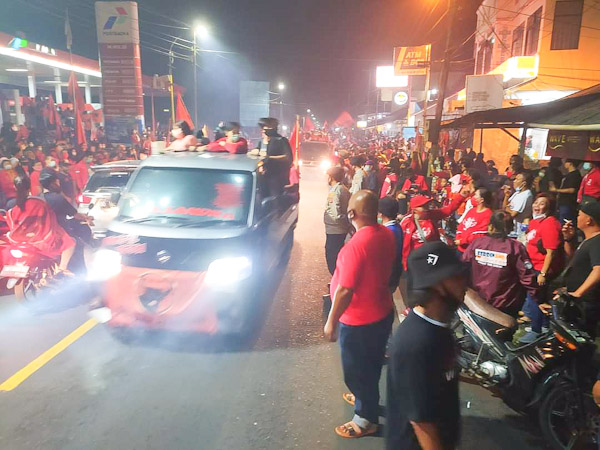 Antusias masyarakat begitu besar dengan melalukan konvoi menuju kediaman Wenny Lumentut, di Terung Kabasaran Kelurahan Kolongan, Rabu (9/12/20) semalam.