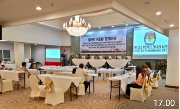 Minsel – Komisi Pemilihan Umum (KPU) Kabupaten Minahasa Selatan (Minsel) melaksanakan rapat pleno terbuka rekapitulasi hasil perhitungan suara pemilihan Gubernur dan Wakil Gubernur Sulawesi Utara serta rekapitulasi dan penetapan hasil penghitungan suara pemilihan Bupati dan Wakil Bupati Minahasa Selatan Tahun 2020 (14/12/2020)