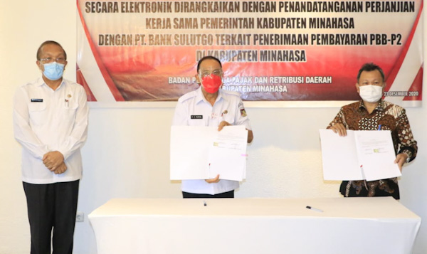 Hal ini tercetus dalam kegiatan sosialisasi Sistem Pemantauan Data Transaksi Pajak Daerah Secara Elektronik di Kabupaten Minahasa, yang dirangkaikan dengan Penandatanganan Perjanjian Kerjasama Pemerintah Kabupaten Minahasa dengan PT Bank SulutGo terkait Penerimaan Pembayaran PBB-P2, Rabu (23/12) sore, bertempat di Hotel Yama Tondano, yang dibuka langsung Bupati Minahasa DR Ir Royke Octavian Roring MSi.