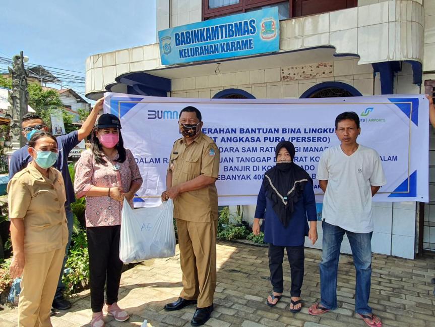 PT Angkasa Pura I (Persero) Bandara Internasional Sam Ratulangi menyalurkan bantuan tanggap darurat bencana banjir berupa 400 nasi kotak yang dibagikan ke empat kelurahan terdampak, yakni Kelurahan Bailang, Kelurahan Karame, Ternate Tanjung, dan Kelurahan Tanjung batu.