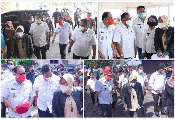 Saat kunjungan Menteri Sosial, Bersama Wakil Gubernur Sulut Steven Kandouw, Bupati Minahasa Royke Oktavian Roring dan Wakil Bupati Robby Dondokambey, menyambut mantan Walikota Surabaya Ibu Tri Rismaharini di Kabupaten Minahasa tepatnya di Desa Tateli Weru Kecamatan Mandolang, Rabu (20/01) siang tadi.