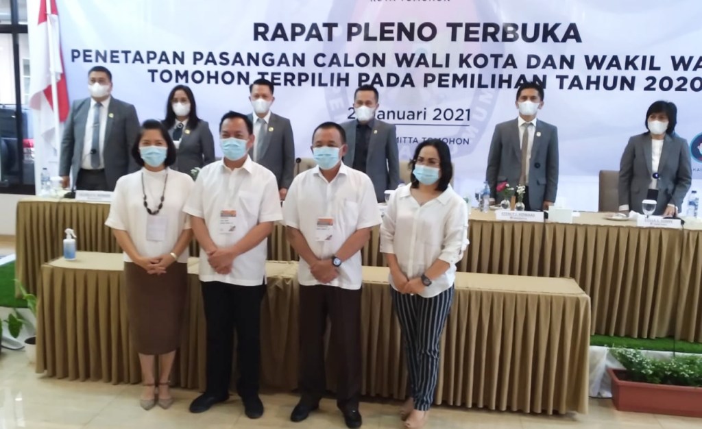 Tomohon- Komisi Pemilihan umum (KPU) Kota Tomohon tetapkan pasangan calon Wali kota dan Wakil wali kota Tomohon Caroll Senduk dan Wenny Lumentut resmi sebagai pemenang dalam pilkada 2020, dalam rapat pleno terbuka yang di laksanakan di Villa Emitta Tomohon, Kamis (21/1/21).