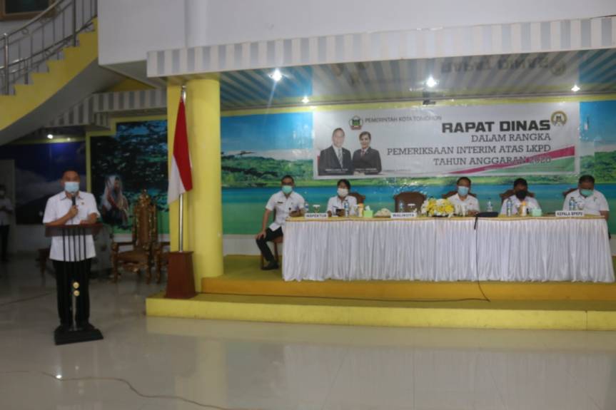 SULUTNEWSTV.com, Tomohon – Pemerintah Kota Tomohon melaksanakan Rapat Dinas dalam rangka pemeriksaan Interim atas Laporan Keuangan Pemerintah Daerah (LKPD) Tahun Anggaran 2020, dipimpin langsung oleh Wali kota Tomohon Jimmy Fredie Eman SE. AK.CA.,bertempat di Aula rumah dinas Wali Kota Tomohon, Rabu (3/2/21).