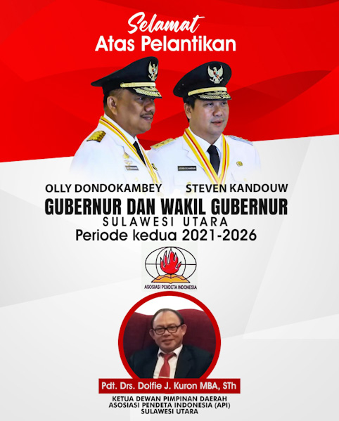 SULUTNEWSTV.com – Asosiasi Pendeta Indonesia (API) Sulawesi Utara turut menyampaikan ucapan selamat atas dilantiknya Olly Dondokambey, SE – Drs. Steven Kandouw (Olly Steven) sebagai Gubernur dan Wakil Gubernur Sulawesi Utara (Sulut) periode 2021-2024 oleh Presiden Republik Indonesia Ir. Joko Widodo di Istana Negara, Senin (15/2).
