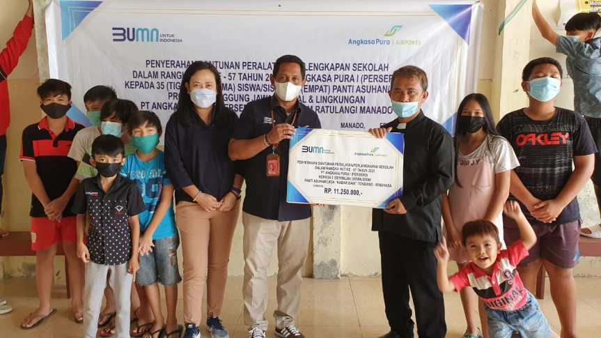 “Di tengah kondisi pandemi Covid-19, seluruh lapisan masyarakat turut terdampak, termasuk diantaranya para pelajar yang berada di panti asuhan. Oleh karenanya pada peringatan HUT ke-57 Angkasa Pura I kali ini, kami fokuskan perayaan bersama anak-anak di panti asuhan agar tetap bersemangat untuk belajar dengan peralatan sekolah yang memadai,” ungkap General Manager Minggus Gandeguai.