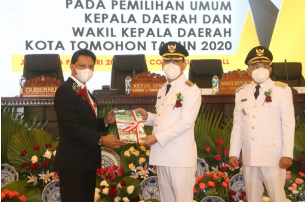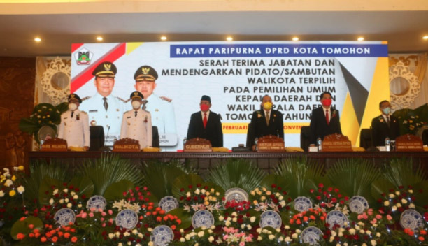 Setelah itu dilanjutkan Walikota dan Wakil Walikota Tomohon mengikuti rapat paripurna DPRD dalam rangka serah terima jabatan yang dipimpin Ketua DPRD Kota Tomohon Djemmy Sundah dan mendengarkan pidato walikota terpilih pada pemilihan umum kepala daerah dan wakil kepala daerah Kota Tomohon tahun 2020 pada hari Jumat, 26 Februari 2021 ini, bertempat di Auditorium Bukit Inspirasi (ABI) Tomohon.