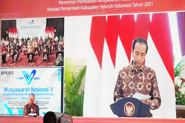 Munas Ke-V APKASI dibuka secara langsung oleh bapak Presiden RI Ir. H.Joko Widodo (Jokowi) yang diikuti Bupati se-Indonesia secara online.